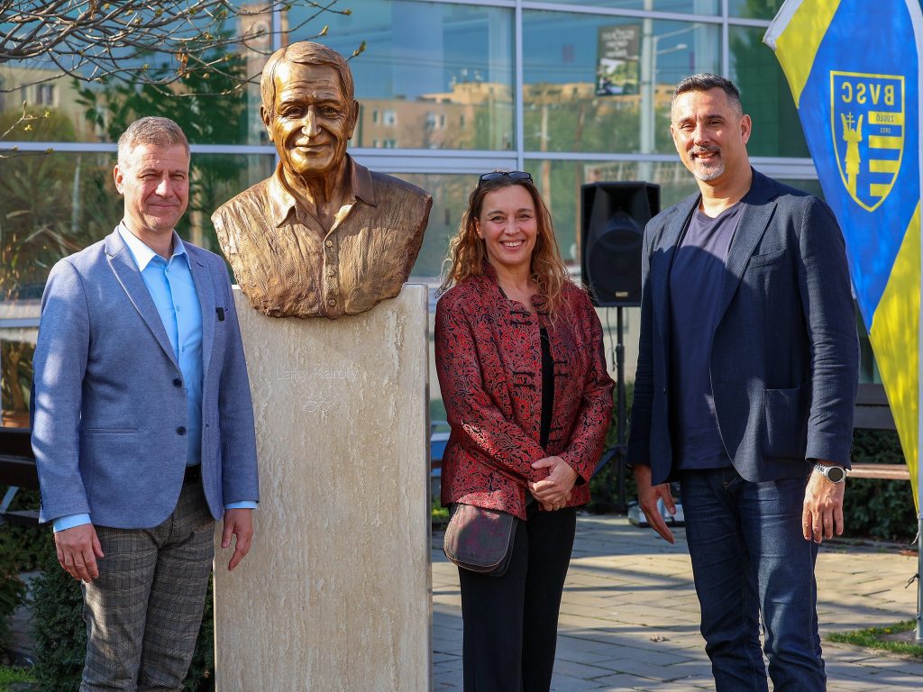 Felavatták Laky Károly szobrát a Szőnyi úti uszodánál